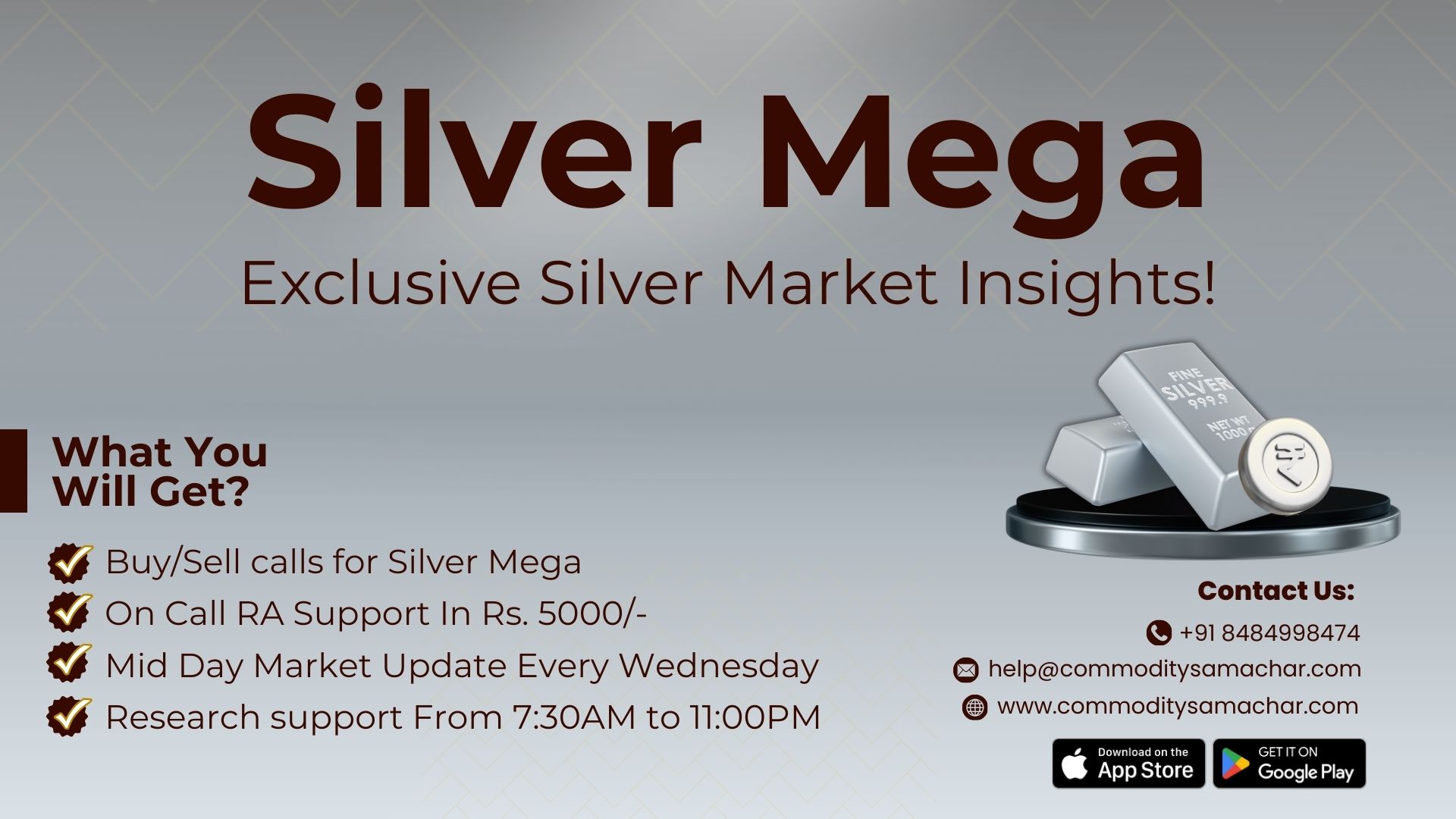 Buy/Sell Calls for Silver Maga - Specially For Mega Lot Traders - Research support From 7:30AM to 11:00PM