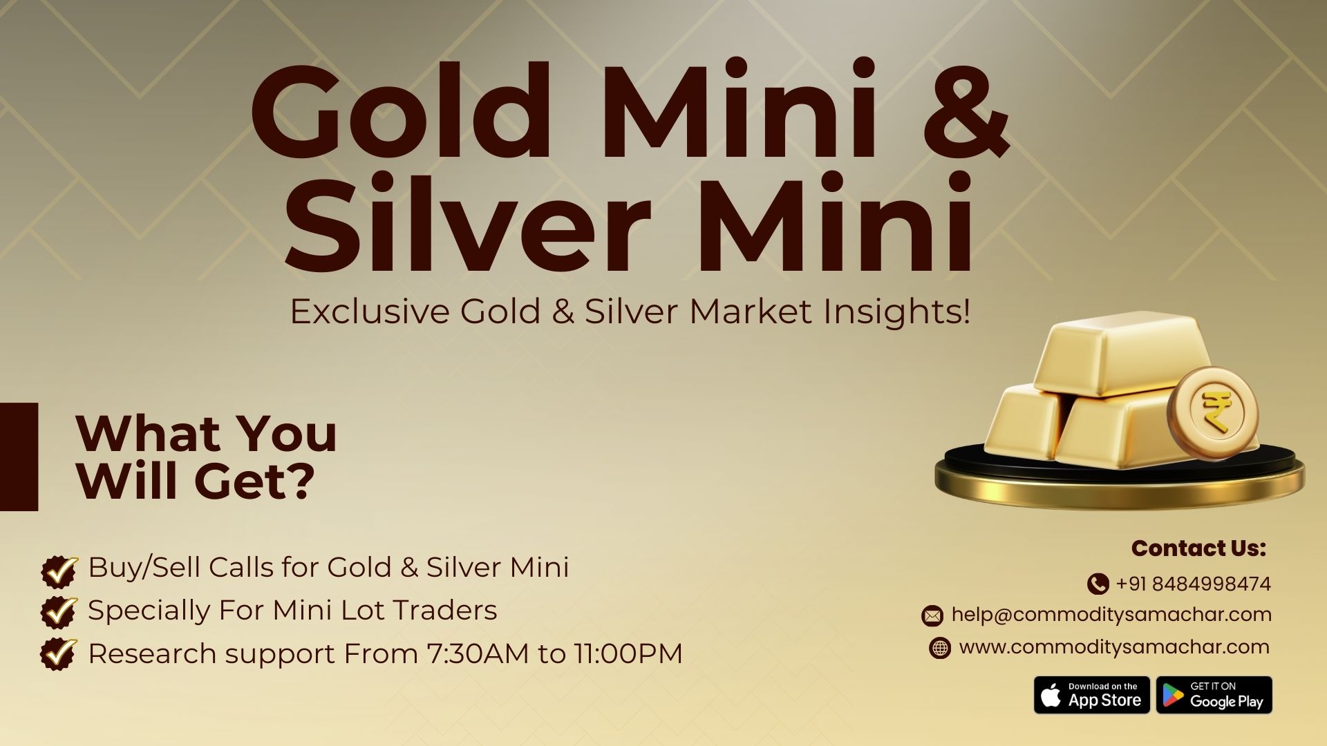 Buy/Sell Calls for Gold & Silver Mini - Specially For Mini Lot Traders - Research support From 7:30AM to 11:00PM